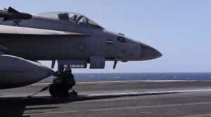 هذه المقاتلة الأمريكية من طراز “سوبر هورنت” ظهرت مجددًا ضمن العمليات العسكرية ضد إيران، لكنها لفتت الانتباه بسبب حملها رمزًا غير معتاد: علم سوريا القديم( النظام المخلوع)