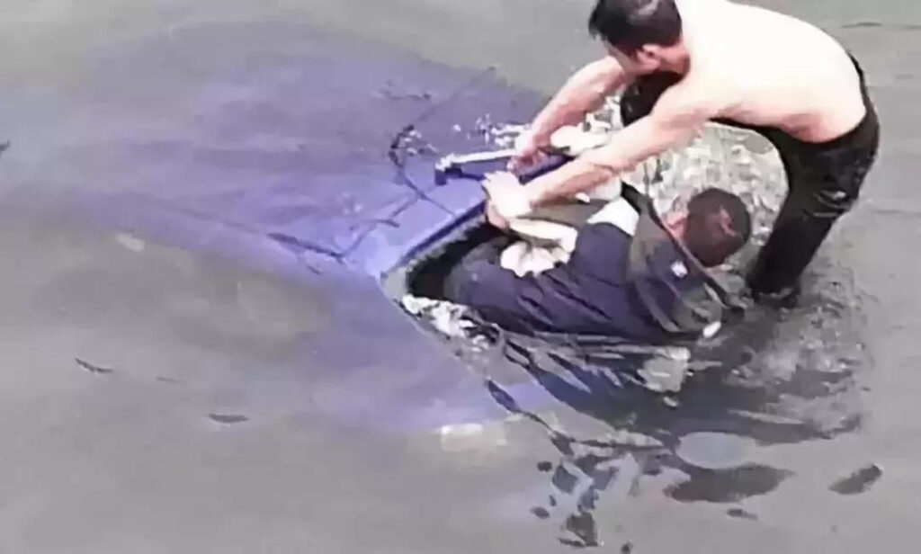 ومع سقوط السيارة في النهر، احتجز السائق داخلها ولم يتمكن من الخروج أثناء غرقها، وعلى الفور، قفز جندي سابق ويدعى دي شوانغتشنغ، يبلغ من العمر 40 عاماً، بشجاعة في الماء.