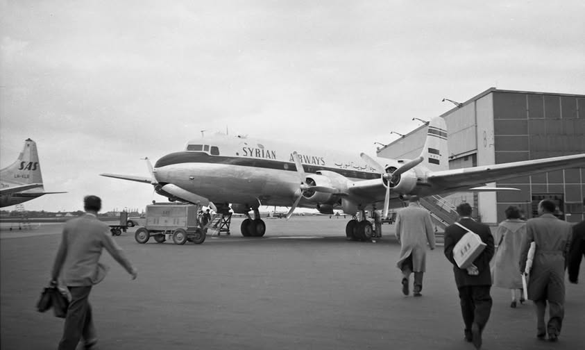 طائرة تابعة لشركة الخطوط الجوية السورية في مطار كوبنهاغن بالدنمارك خمسينات القرن الماضي
