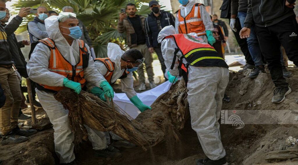 ووفق المكتب الإعلامي، فإن المقابر الجماعية تأتي “في إطار حرب الإبادة الجماعية والجريمة التاريخية التي ارتكبها جيش الاحتلال داخل مجمع الشفاء الطبي وأعدم خلالها قرابة 400 شهيد”.