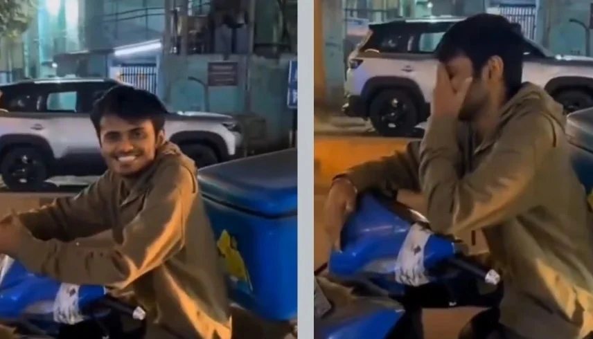 ويُظهر الفيديو، الذي جرى تصويره على طريق عام في الهند، الشاب جالساً على دراجته المخصصة للتوصيل، بينما تقوم الفتاة بتصويره بهاتفها المحمول، وهي تضحك وتسأله بسخرية عن مساره المهني.