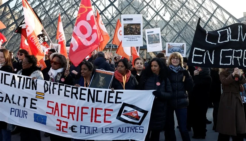 أعلن متحف اللوفر إغلاق أبوابه أمام الزوار، بسبب إضراب الموظفين، الذي عاد مجدداً خلال الأسابيع القليلة الماضية، احتجاجاً على الأجور ونقص الكوادر، وتدهور ظروف العمل داخل المتحف.