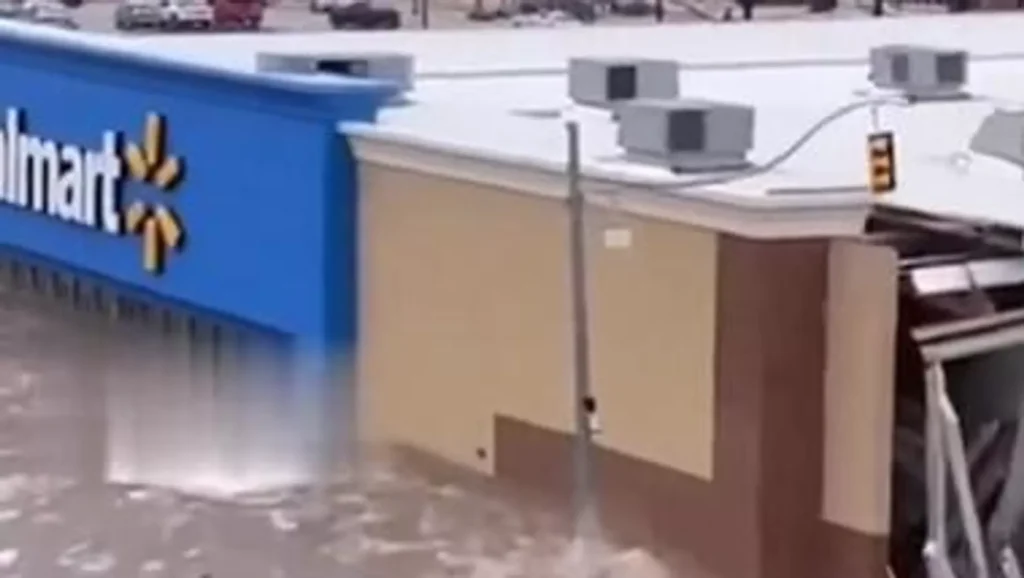 وفي مشهد صادم، انفصل مبنى تابع لسلسلة متاجرعن موقعه الأصلي، وبدأ بالانجراف عبر شوارع المدينة التي غمرتها المياه. واصطدم المبنى بعدد من المنشآت الأخرى أثناء جرفه، قبل أن يتمزق في النهاية تحت ضغط المياه المتدفقة.