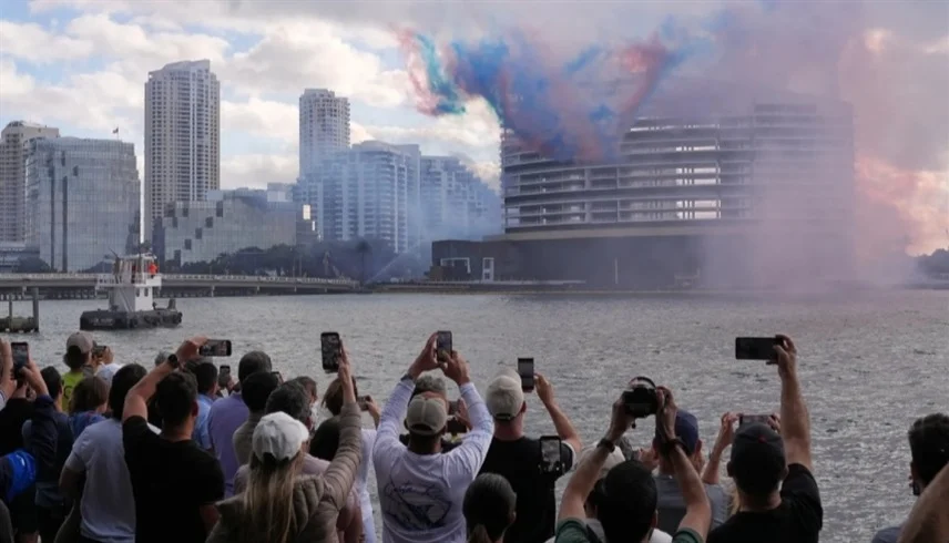 تجمع المتفرجون على ضفاف خليج بيسكاين، يحملون هواتفهم ويوثقون اللحظات الأخيرة للمبنى الذي افتُتح قبل 25 عاماً.