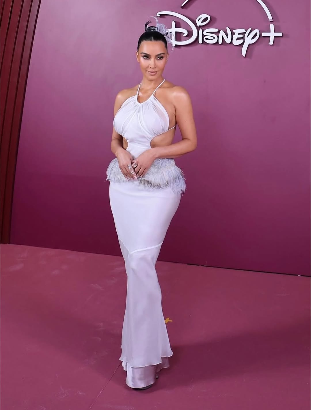 وأخيراً، أصبحت هذه الأم لأربعة أطفال تفضّل الفساتين شبه الشفّافة مكشوفة الظهر. في اليوم السابق، على السجادة الحمراء لمسلسلها الجديد “كل شيء في محله” على هولو في ريو دي جانيرو، تألّقت كيم بفستان من الحرير الكريب والساتان والشيفون من تصميم كونر آيفز. تميز الفستان بفُتحة رقبة متقاطعة، وظهر مفتوح، وفُتحات عند الخصر، وصدرية شبه شفّافة، وتفاصيل من الريش عند الوركين، وتنورة متعددة الطبقات.