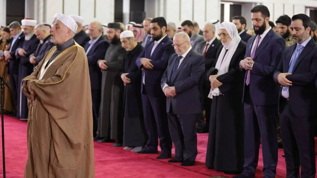 أدى الرئيس السوري أحمد الشرع وحشد من المصلين، صلاة عيد الفطر المبارك من مصلى قصر الشعب في العاصمة السورية دمشق، في أول مرة يشهد فيها هذا المكان حدثا من هذا النوع.