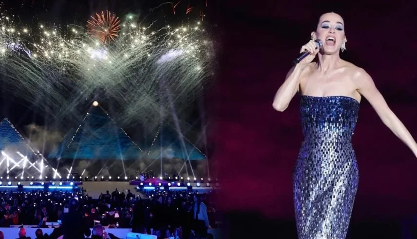 وقدمت بيري باقةً من أشهر أغانيها على المسرح المُقام عند سفح الأهرامات، وتفاعلت مع الحضور عبر الرقص والغناء، فيما أضاءت الألعاب النارية سماء المنطقة مانحةً المشهد طابعاً احتفالياً مميزاً.