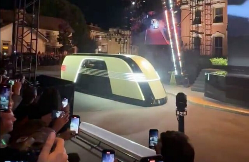 ويظهر الفيديو ردود فعل الحضور المذهولين بينما تنزلق المركبة ذات التصميم المستقبلي على المسرح في هدوء تام، بطلاءها الأصفر اللامع وأبوابها ذات الجناحين التي تذكرنا بمشاهد أفلام الخيال العلمي.