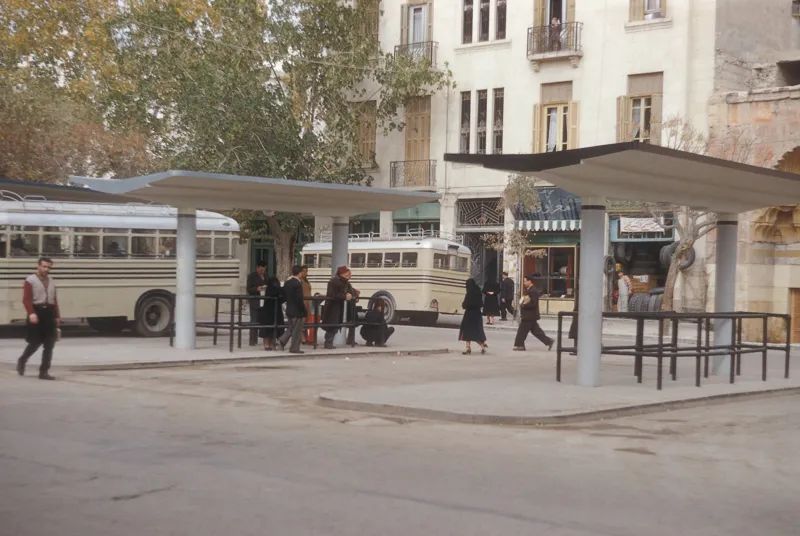 محطة لحافلات النقل الداخلي في دمشق عام 1951