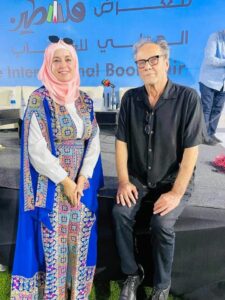 وفي إحدى اللحظات الإنسانية التي تزداد وضوحاً مع الغياب، أستعيد لقائي به على هامش معرض الكتاب في رام الله عام 2023. وبعد ندوة كان فيها متحدثاً أساسياً وبعنوان 🙁 المشهد الفلسطيني وإثراؤه درامياً وسينمائياً ) لم يكن اللقاء طويلًا، لكنه كان مكثّف الدلالة.
