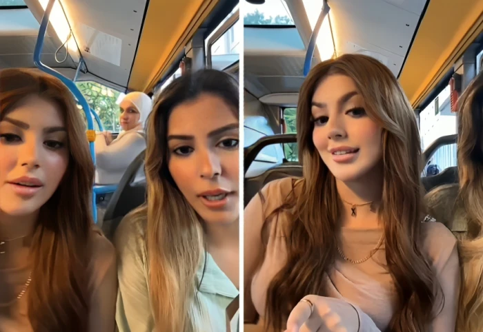 وأظهر الفيديو الفتاتين وهما تجلسان في المقعد الأمامي وتصوران مقطع فيديو، بينما كانت امرأة عراقية أخرى تجلس خلفهما وتعترض على التصوير داخل وسيلة مواصلات عامة، وطلبت منهما عدم تصويرها معتبرة أن ذلك لا يحترم خصوصية الركاب.