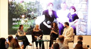 في فيلم “بابا والقذافي” حضرت المخرجة جيهان، أفراد عائلتها الذين ظهروا معها في العمل، والدتها بهاء، وشقيقها رشيد، وابنة شقيقها دانيا. وتحدثت المخرجة جيهان خلال الإيجاز الصحفي الخاص بالفيلم عن رحلة الفيلم في استكشاف ملابسات اختفاء والدها، منصور رشيد الكيخيا، الدبلوماسي الليبي وزعيم المعارضة السلمية الذي اختفى في عام 1993، قبل العثور على جثمانه بعد 19 عامًا من فقدانه.