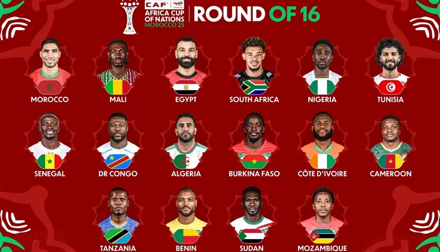 مواعيد مباريات دور الـ16 في كأس أمم أفريقيا كالتالي:
