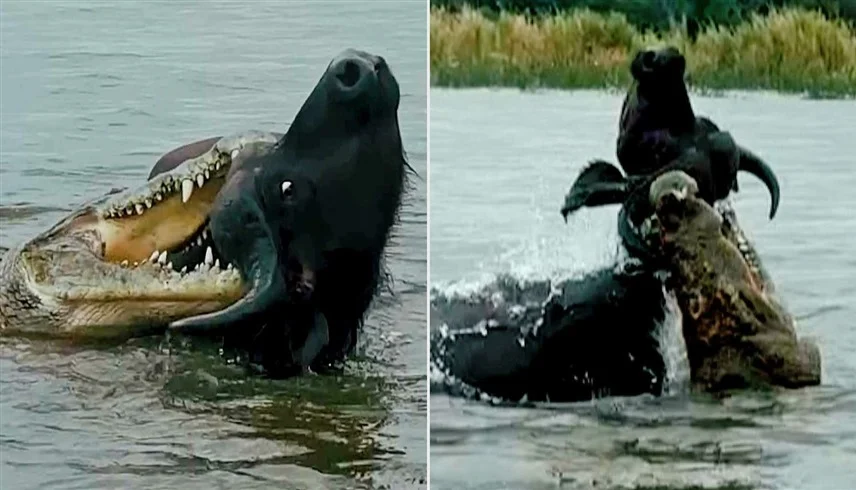 وبحسب ما نشرته صحف عالمية يظهر الفيديو لحظة الهجوم المباغت، حين انقضّ التمساح على الجاموس قرب ضفة النهر، مطبقاً فكيه القويين على رأسه في محاولة لجرّه إلى عمق الماء وإسقاطه كفريسة، إلا أن الجاموس واجه الهجوم بمقاومة شديدة، مستخدماً قوته وقرونه للدفاع عن نفسه وسط صراع محتدم استمر دقائق.