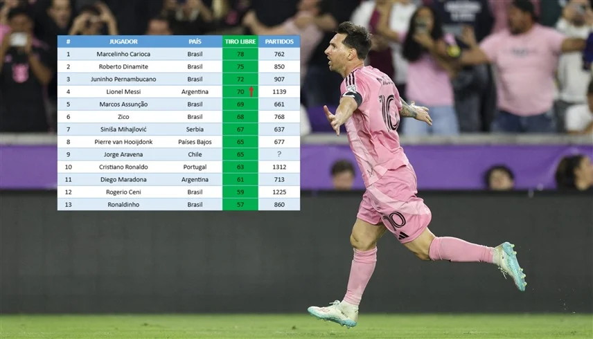 فبعد ثنائيته الأخيرة مع إنتر ميامي في مرمى أورلاندو (4-2) بالجولة الثانية من بطولة الدوري الأميركي للمحترفين، رفع “البرغوث” رصيده إلى 70 هدفاً من ركلات حرة، ليصبح على بُعد خطوتين فقط من معادلة رقم البرازيلي جونينيو برنامبوكانو (72 هدفاً) واقتحام المراكز الثلاثة الأولى تاريخياً.