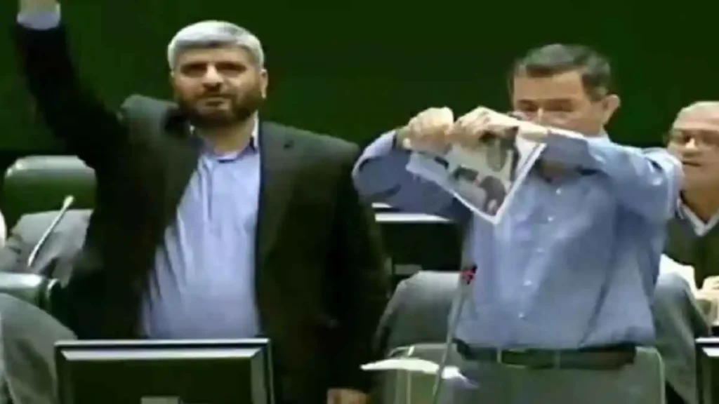 السياسي – في رد فعل رمزي على إهانة البرلمان الأوروبي لصورة علي خامنئي، قام مجتبى زارعي النائب في البرلمان الإيراني عن التيار المتشدد، الاثنين، بتمزيق صور بعض القادة الأوروبيين فيما هتف بقية النواب بشعارات تؤكد الولاء المطلق للقيادة الإيرانية، تحت شعار: “خامنئي كوثر، وعدوه أبتر”.