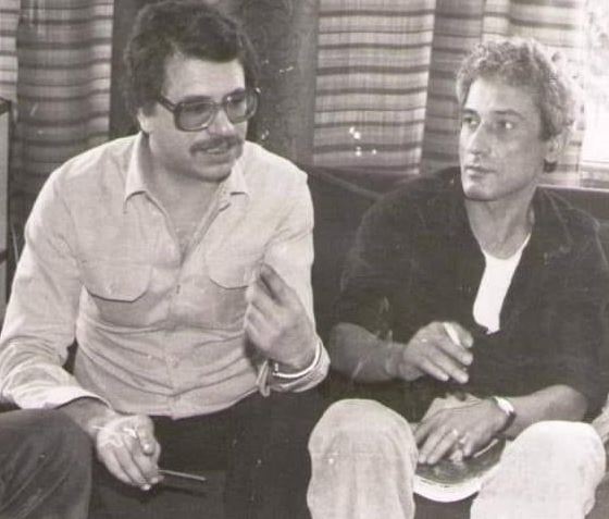 ناجي العلي ومريد البرغوثي عام 1984 قبل ثلاث سنوات من اغتيال ناجي العلي في لندن