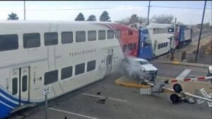 ولم يتمكن القطار من التوقف في الوقت المناسب، فصدم السيارة بقوة، مما أدى إلى سماع صوت قوي داخل القطار، بحسب شبكة فوكس نيوز.