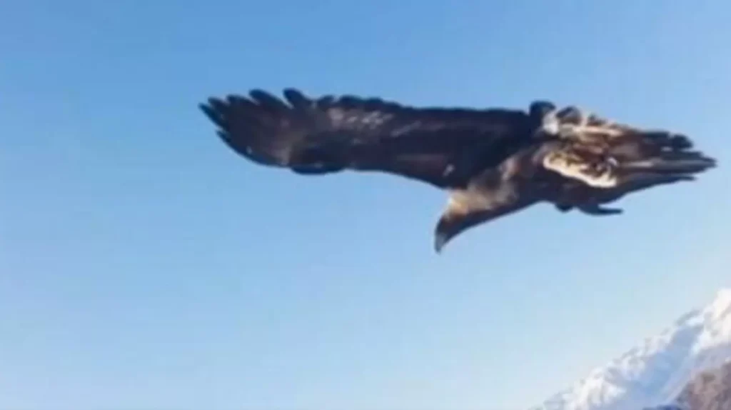 ويظهر الفيديو لحظة اقتراب النسر من الطائرة في الجو، ثم إمساكه بها قبل أن يسقطها لاحقا على قمة جبلية شاهقة، في مشهد أثار دهشة المتابعين وحظي بتفاعل واسع عبر المنصات الرقمية.