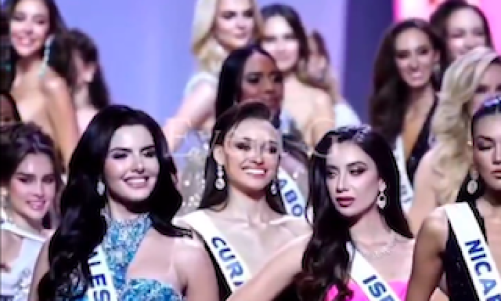 السياسي – أثار مقطع فيديو من مسابقة “ملكة جمال الكون 2025” تم تداوله في الساعات الأخيرة، جدلا واسعا، بعد أن ظهرت فيه ملكة جمال إسرائيل وهي تُلقي نظرات عدائية نحو ملكة جمال فلسطين نادين أيوب أثناء إحدى الفعاليات الرسمية للمسابقة.