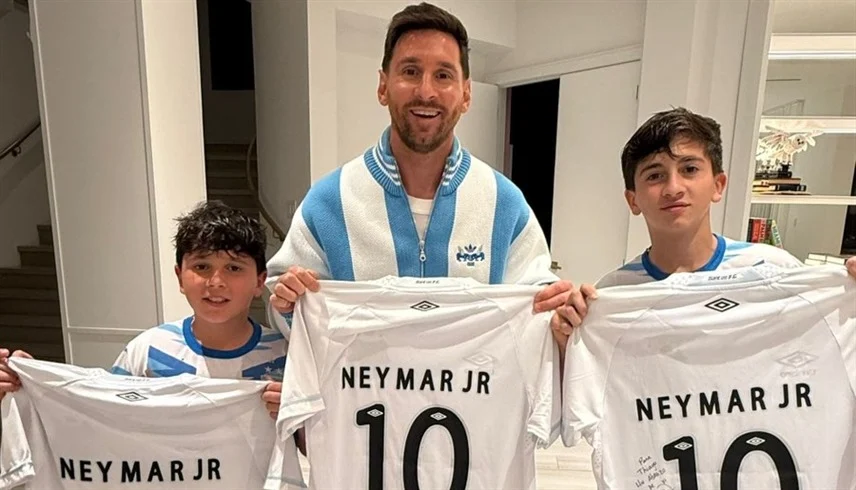 نشر نادي سانتوس البرازيلي صورة للنجم الأرجنتيني ليونيل ميسي رفقة أبناءه يحملون قميص نيمار جونيور.