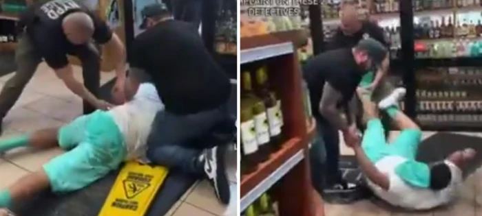 وأظهر الفيديو تعرض الرجل لإصابات مصحوبة بنزيف، مع ظهور بقع دماء على أرضية المتجر، فيما واصل الشرطيان استخدام القوة أثناء تثبيته وتقييده بالأصفاد وهو ملقى على الأرض.