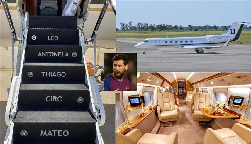 ليونيل ميسي يضيف طائرة خاصة جديدة إلى ممتلكاته، بقيمة تصل إلى 50 مليون يورو، من طراز جلف ستريم. الطائرة صُممت بشكل فخم يعكس شخصية النجم الأرجنتيني.