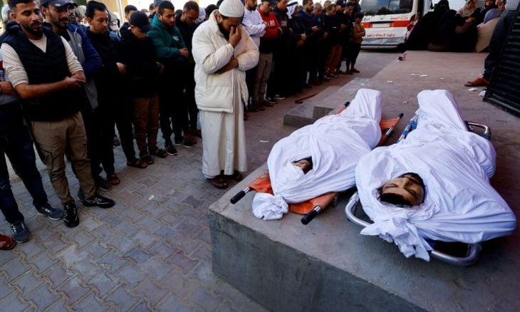 وفجر الاثنين، قال مصدر طبي في مستشفى شهداء الأقصى (وسط) إن 3 فلسطينيين استشهدوا وأُصيب آخر بقصف إسرائيلي على مدينة دير البلح.