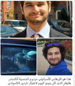 ونشرت وسائل اعلام اميركية نقلا عن السلطات صورا للجاني وهو ارهابي اسرائيلي مزدوج الجنسية يدعى ألكسندر هايفلر وكان ينوي اغتيال ناردين الكسواني وهي أم وناشطة فلسطينية في نيويورك.