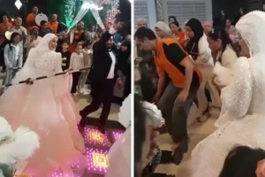 لحظة قبلة العريس – انفجار غيّر مسار الزفاف – شاهد