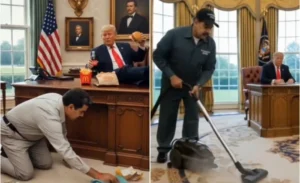 فيديو مولّد بالذكاء الاصطناعي – مادورو عامل نظافة في مكتب ترامب
