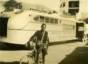 الرحالة الأميركي فريد بيرشمور في دمشق وهو يستعد للتوجه الى بغداد مع دراجته – في ثلاثينيات القرن الماضي .