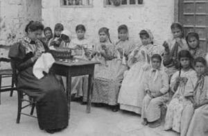 مدرسة لتعليم الخياطة والتطريز في مدينة اللد عام 1900