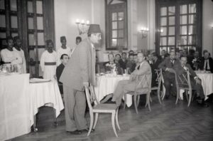الأديب “عباس محمود العقاد” يلتقي بنخبه من المثقفين الفلسطينيين بمدينة القدس عام 1946.